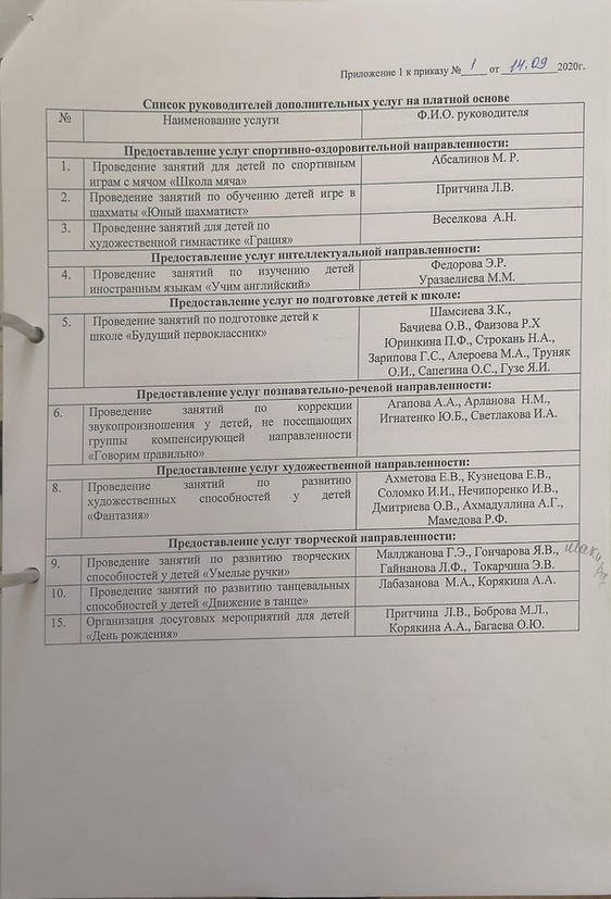"Об организации платных образовательных услуг", от 14.09., 2020 г., №1